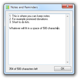 The Notes and Reminders window allows notes to be made at any point whilst using MaxMyGift.
