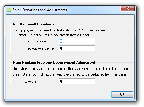 Under this scheme amounts up to £5000 (as at time of writing) can be reclaimed. This is useful for reclaiming for amounts given in collection plates and buckets.